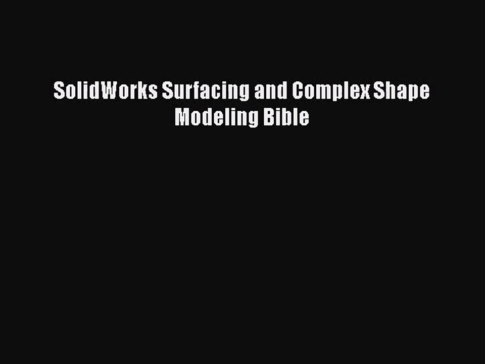 Pdf Download Solidworks Surfacing And Complex Shape Modeling Bible Read Online - Video Dailymotion